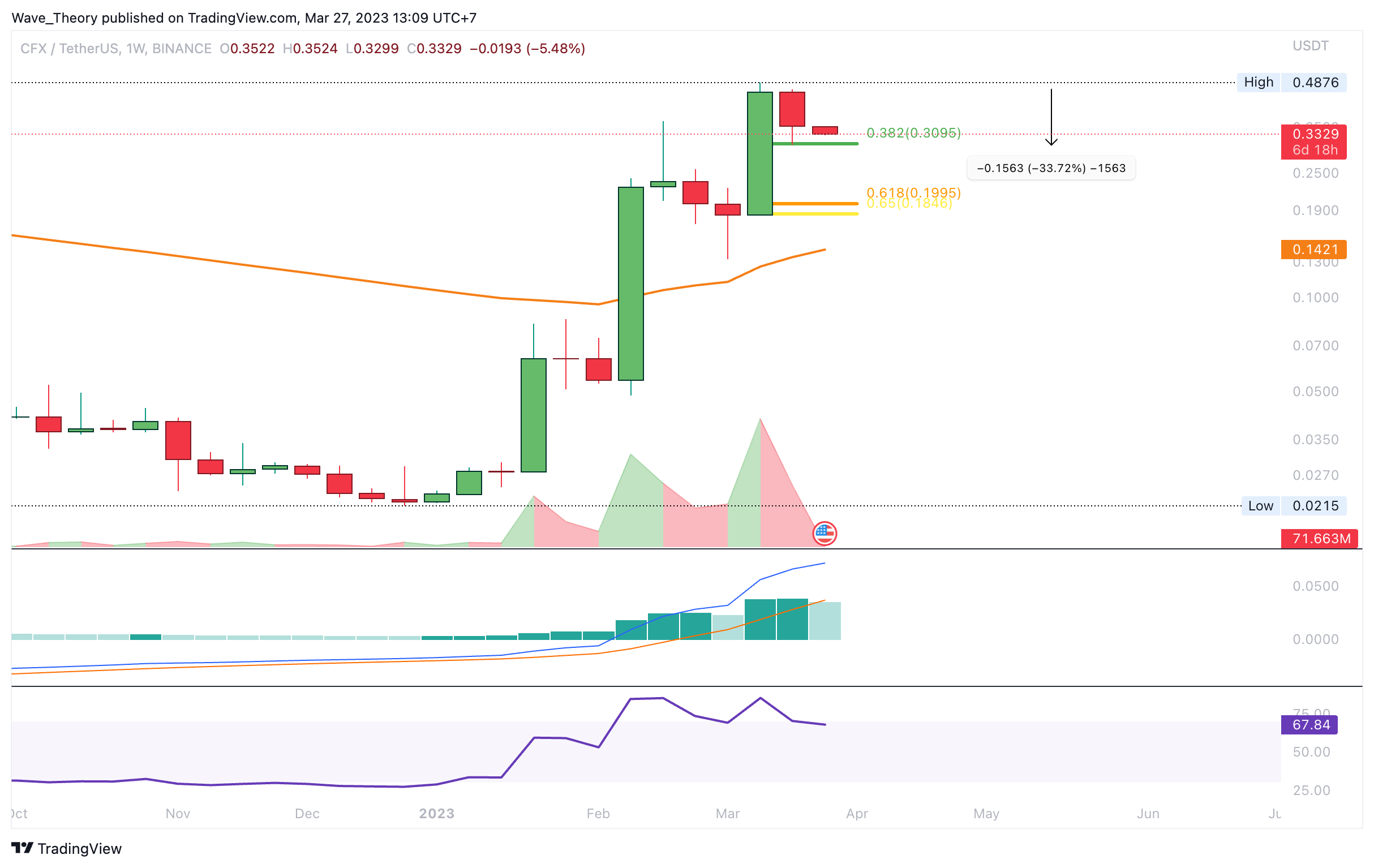 Conflux (CFX) gehörte letzte Woche noch zu den Top Gewinnern. Doch in der letzten Woche korrigierte der CFX Kurs rund 33,7 %. Damit findet CFX jetzt bei rund 0,3095 USD und bei rund 0,19 USD die nächsten signifikanten Fibonacci Unterstützungen.