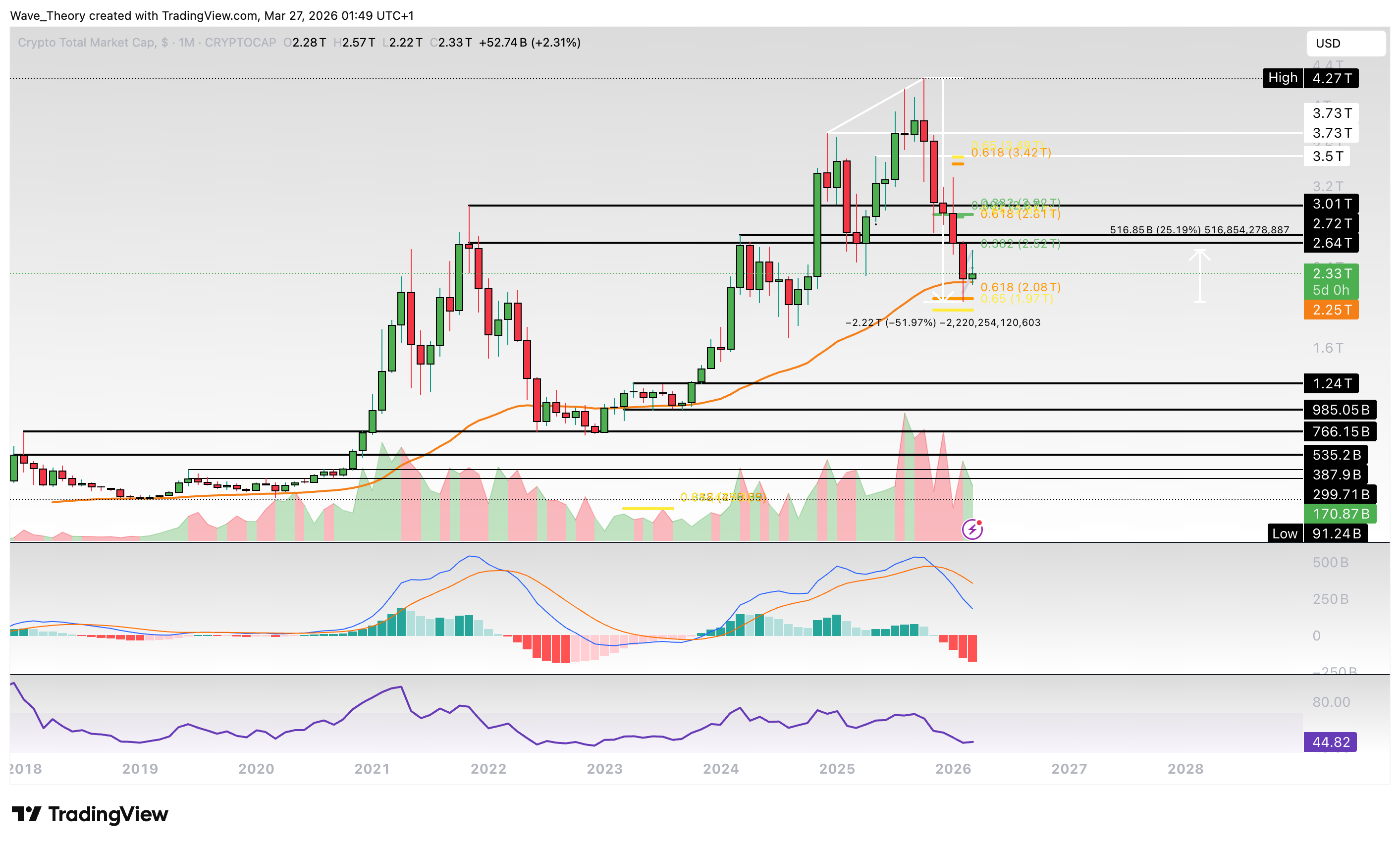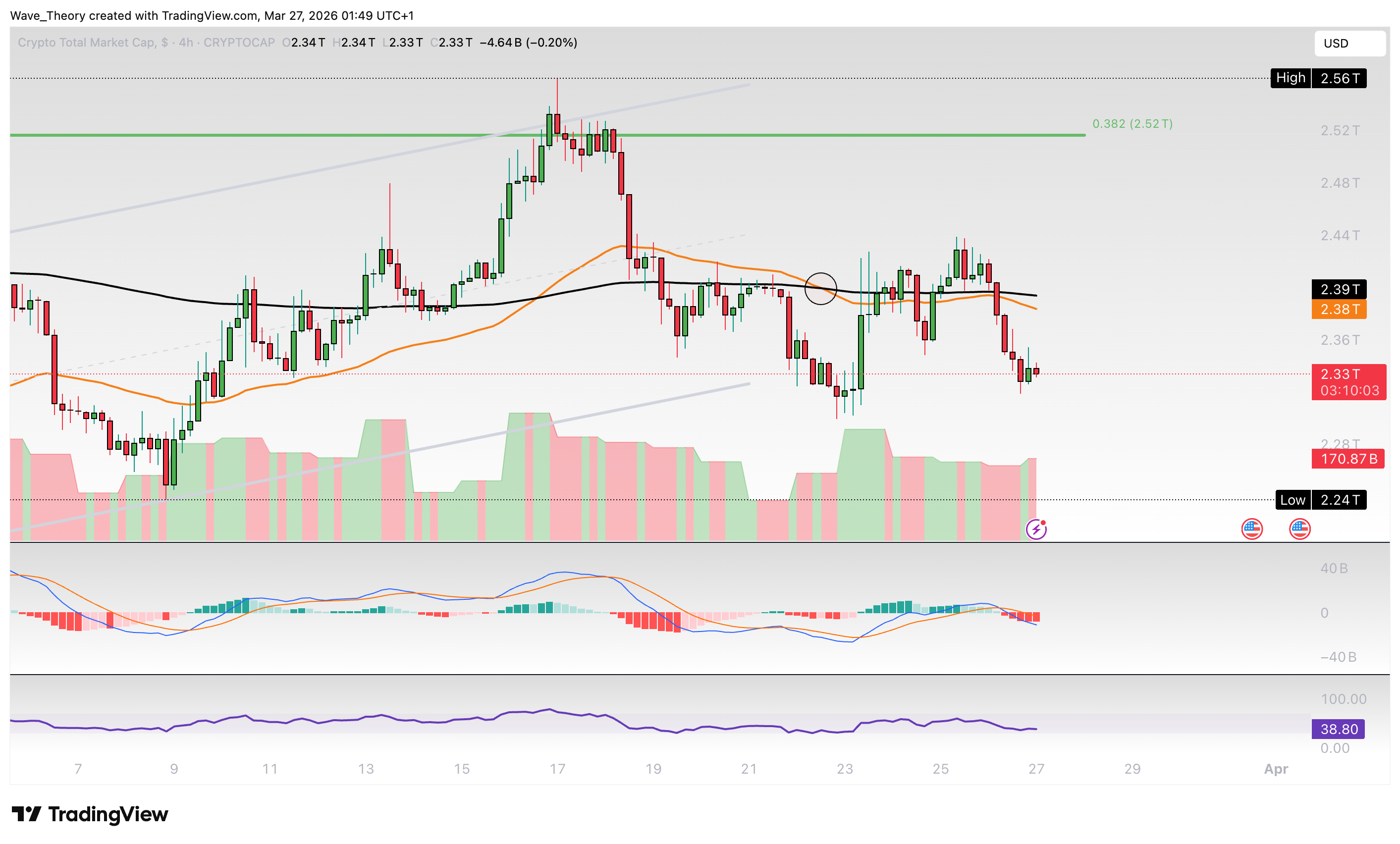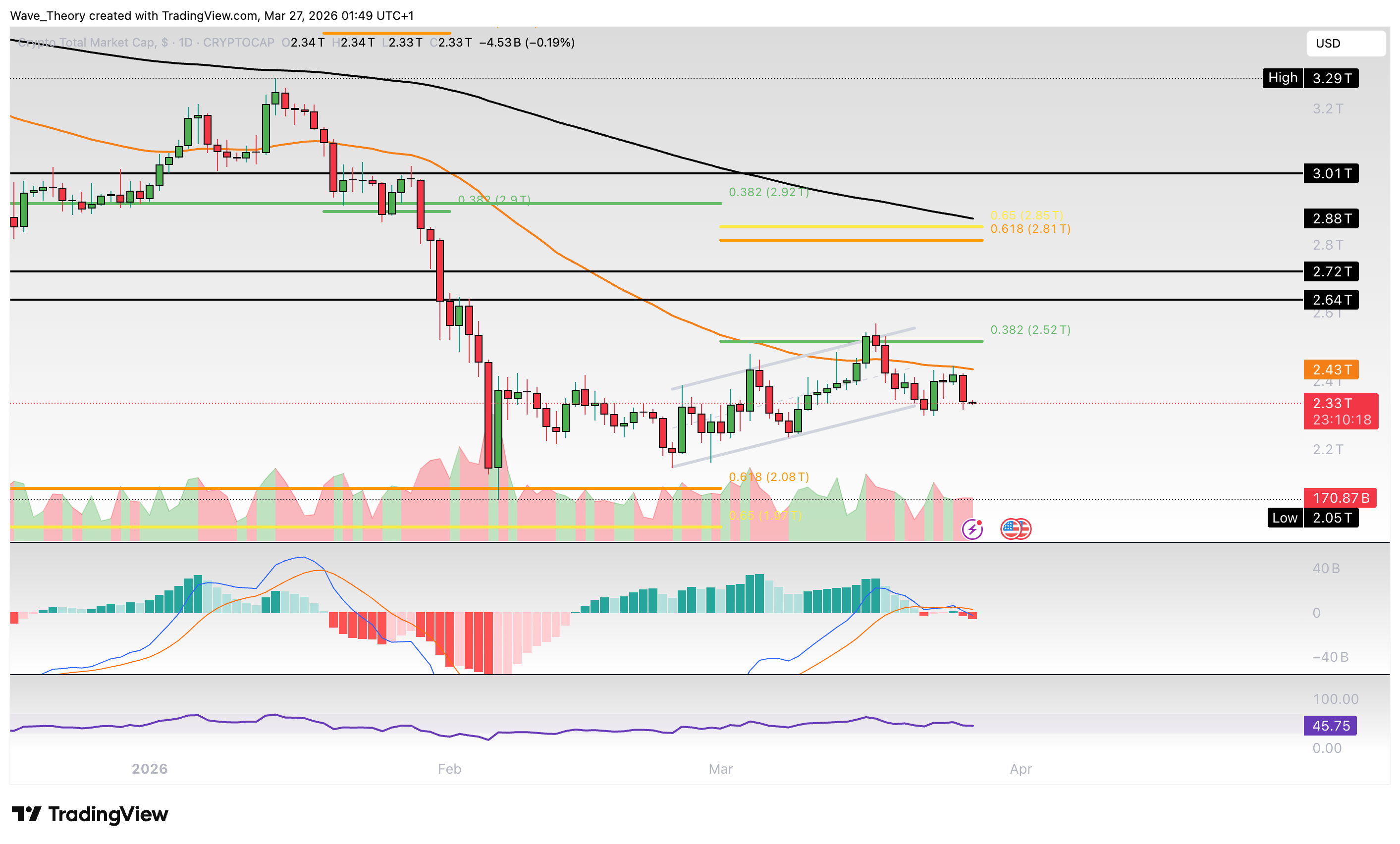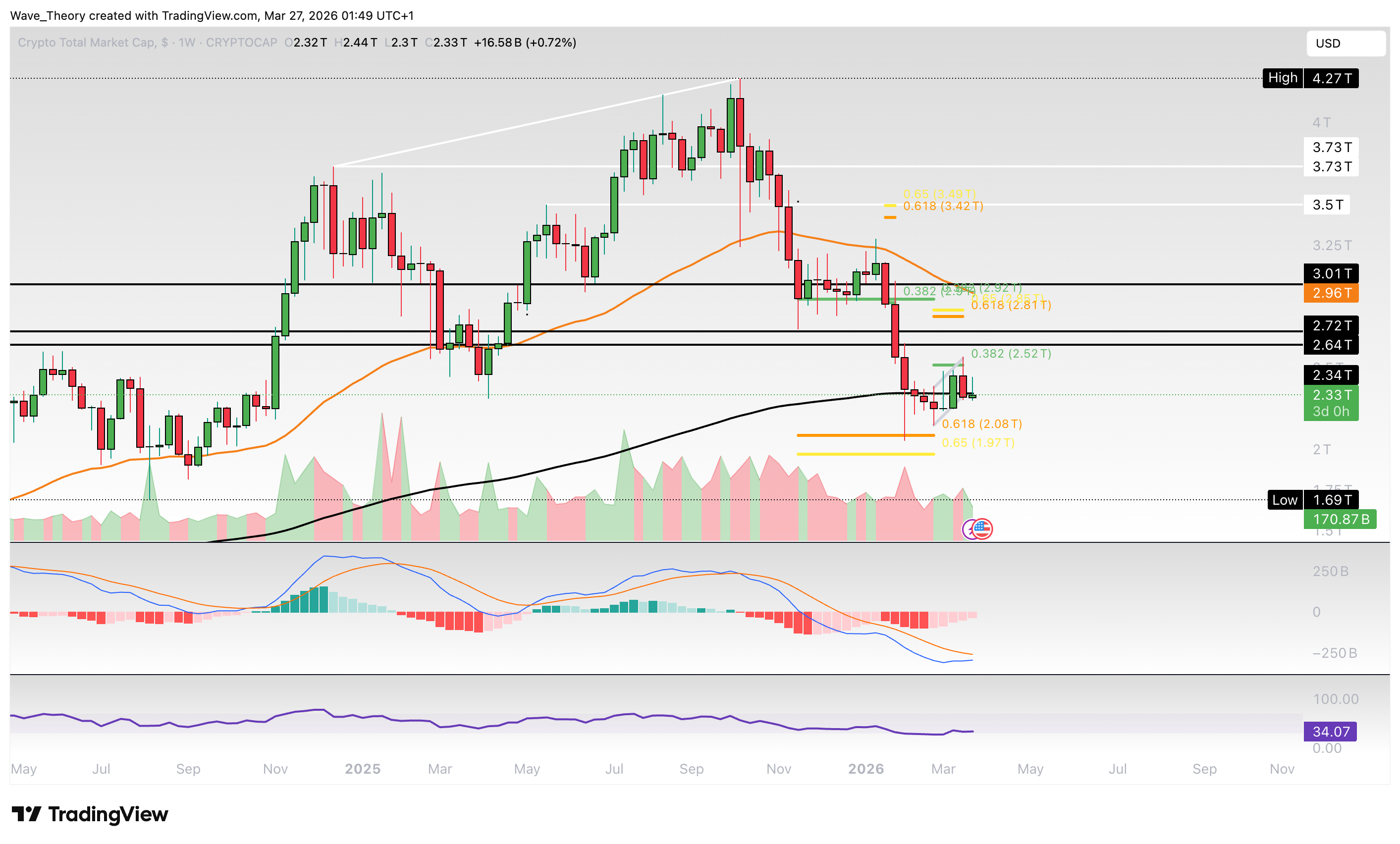 Der Krypto-Markt wurde letzte Woche am 0,382 Fib Widerstand bei rund 2,52 Billionen USD bärisch abgewiesen