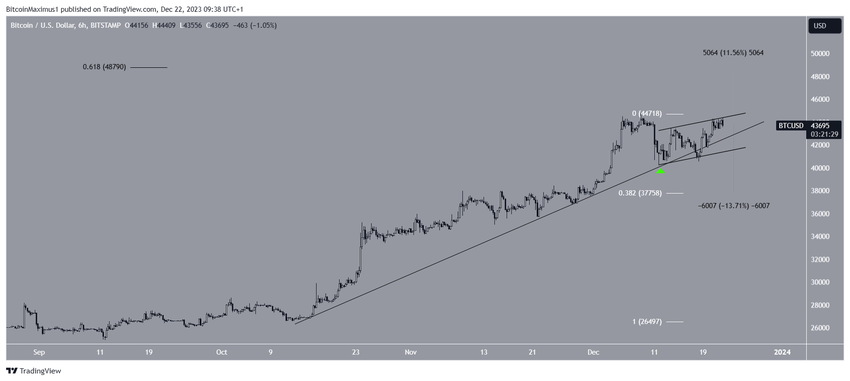 Nach einem anfänglichen Rückgang durchbrach der BTC Kurs am 11. Dezember die Unterstützungslinie. Seitdem steigt er in einem parallelen aufsteigenden Kanal, der als Korrekturmuster angesehen wird.