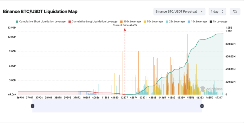 Die Liquidationen erfolgten, als Bitcoin (BTC), um 10 Prozent von 45.000 auf 40.750 USD fiel. In ähnlicher Weise fiel Ethereum (ETH) von 2300 auf 2100 USD. Der Screenshot unten zeigt, dass die Long-Positionen fast vollständig liquidiert wurden.