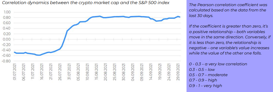 Sponsored„Ab Ende Juli wurden die Veränderungen des Korrelationskoeffizienten beobachtet, und vom 10. August bis zum Ende des Quartals bestand eine starke positive Beziehung zwischen diesen beiden Indikatoren. Der Kryptowährungsmarkt reagierte stärker auf allgemeine wirtschaftliche Ereignisse. Gleichzeitig nahm der regulatorische Druck auf die Kryptoindustrie immer weiter zu.“