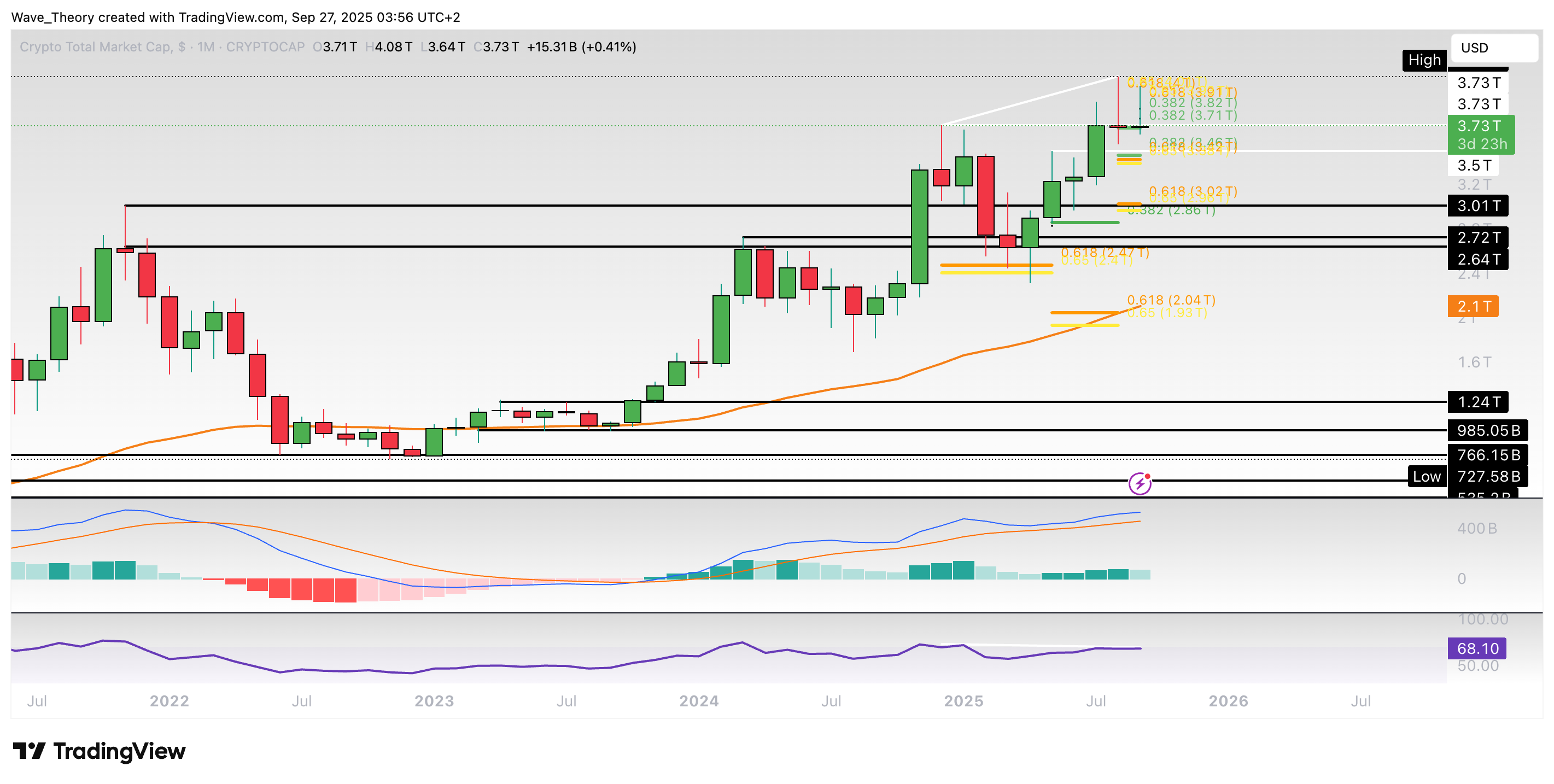 Bricht der Markt diese, könnte er zum letzten Hoch bei rund 4,07 Billionen USD zurückkehren.