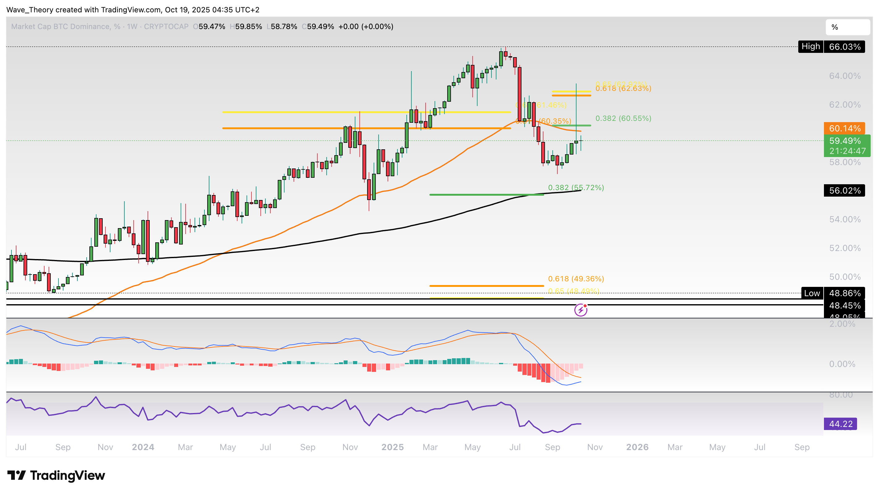 Die Bitcoin Dominanz wurde am Golden Ratio Widerstand bärisch abgewiesen