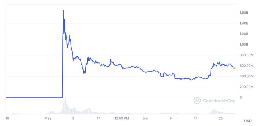 Für einen Meme-Coin hält sich PEPE inzwischen schon relativ lange ziemlich weit oben. Wenn man bedenkt, dass der Token im April aus dem Nichts gekommen ist und als Spaßwährung innerhalb weniger Wochen eine Marktkapitalisierung von fast 2 Milliarden Dollar erreicht hat, ist auch die aktuelle Bewertung von rund 584 Millionen Dollar noch sehr hoch. Immerhin gelingt es nur in den wenigsten Fällen, dass ein Meme-Coin überhaupt mehrere Millionen Dollar Marktkapitalisierung erreicht.