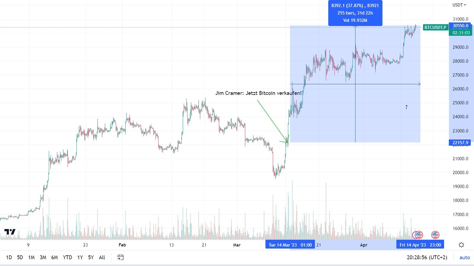 SponsoredSo empfahl Cramer seinen Zuschauer:innen am 13. März 2023, sämtliche Bitcoin zu verkaufen. Er erklärte dazu: