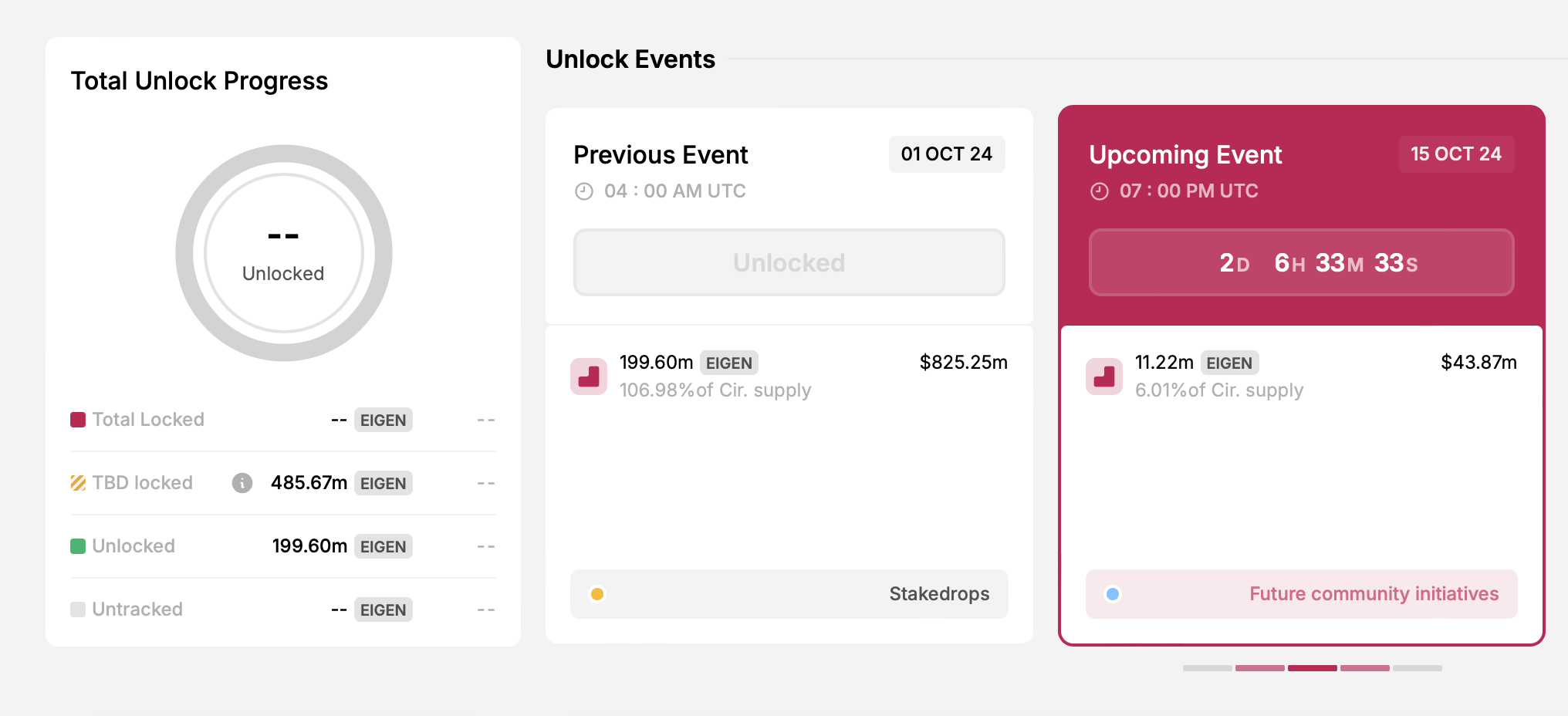 Das auf Ethereum basierende Restaking-Protokoll EigenLayer startete im Oktober mit der Notierung seines EIGEN-Tokens an den wichtigsten Krypto-Börsen. Am 15. Oktober wird das Projekt mehr als 11 Millionen EIGEN ausgeben, die derzeit einen Wert von 43,87 Millionen USD haben. Diese Token sind für zukünftige Gemeinschaftsinitiativen bestimmt, was bedeutet, dass die Freigabe keinen signifikanten Einfluss auf den Preis der Token haben wird.