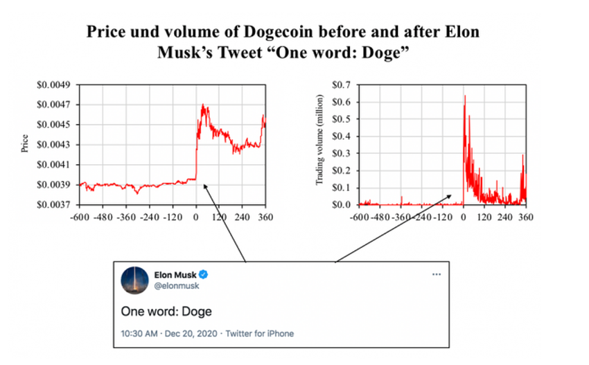 Musk ist bereits grundlegender Bestandteil der Geschichte von mehr als einer Kryptowährung. Seine Tweets über Dogecoin, einen von Billy Markus und Jackson Palmer entwickelten Memecoin, erwiesen sich im Allgemeinen als Preiskatalysatoren.