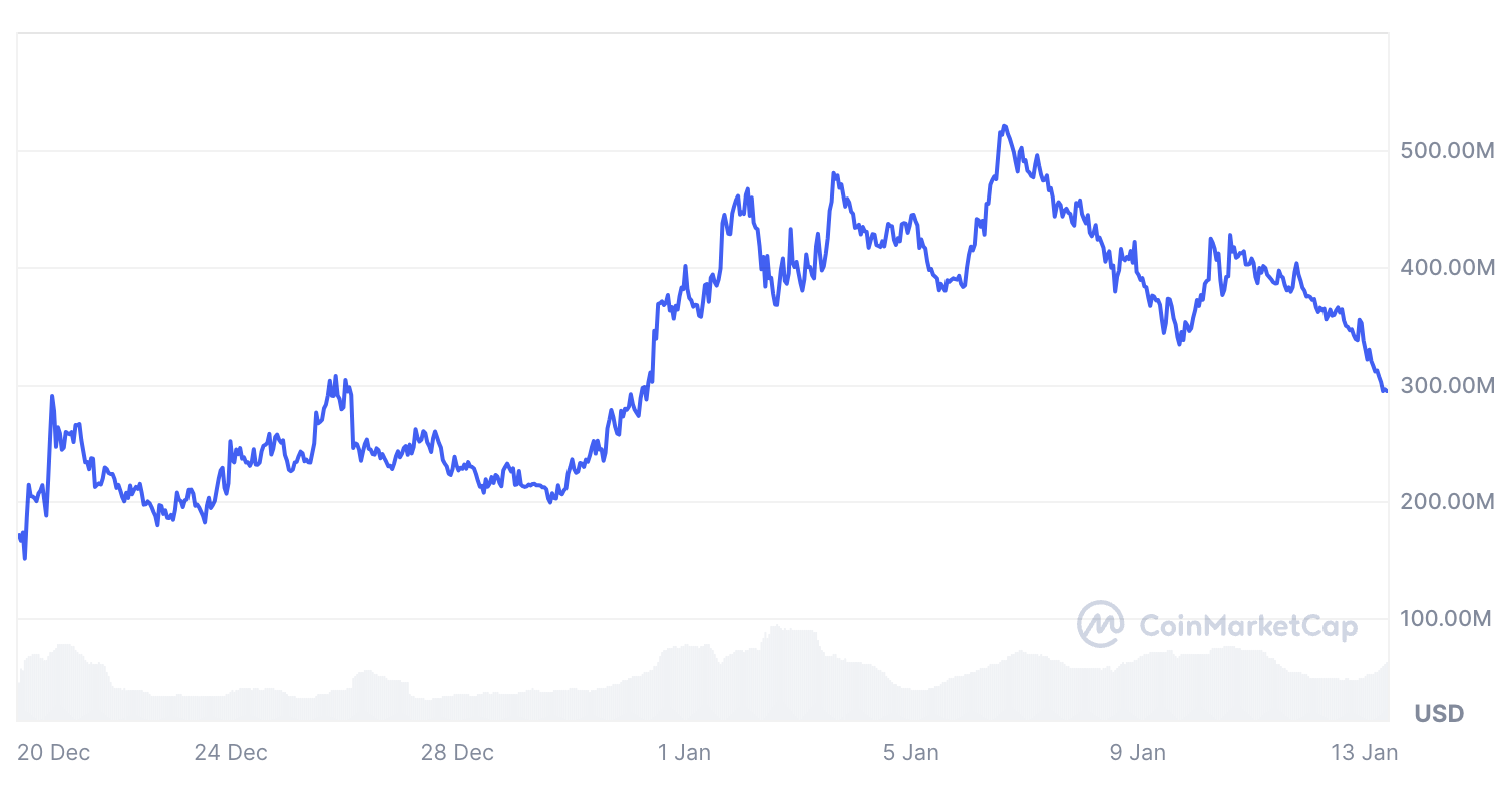 Die wichtigsten AI-Token haben in den letzten sieben Tagen erhebliche Rückgänge erlebt. RENDER ist um 27 Prozent gefallen, TAO um 28 Prozent und FET um 26 Prozent. VIRTUAL, einst der größte AI-Coin, ist auf den fünften Platz gefallen, um 45 Prozent, mit einer Marktkapitalisierung von 1,4 Milliarden USD.
