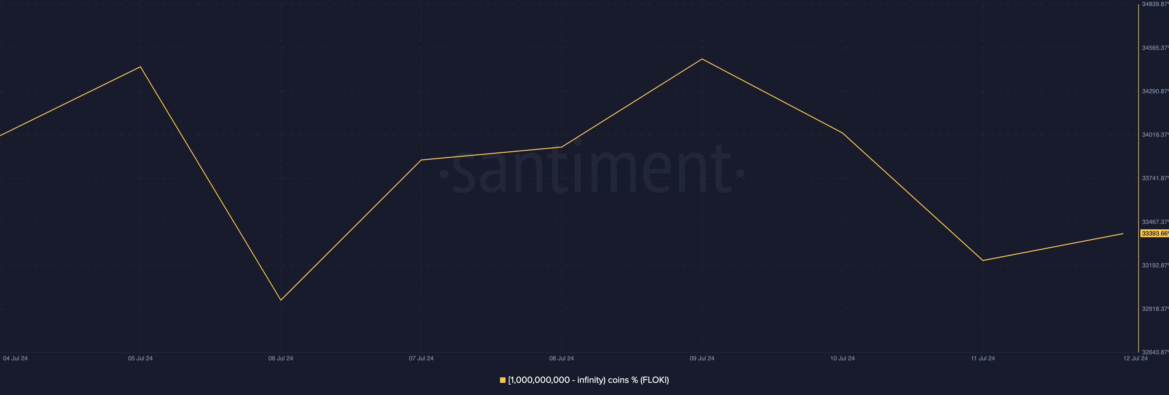 Jedoch zeigt in der zweiten Juliwoche Daten von Santiment, dass Adressen, die über 1 Milliarde FLOKI halten, mehr von dem Token zu ihrem Bestand hinzugefügt haben.