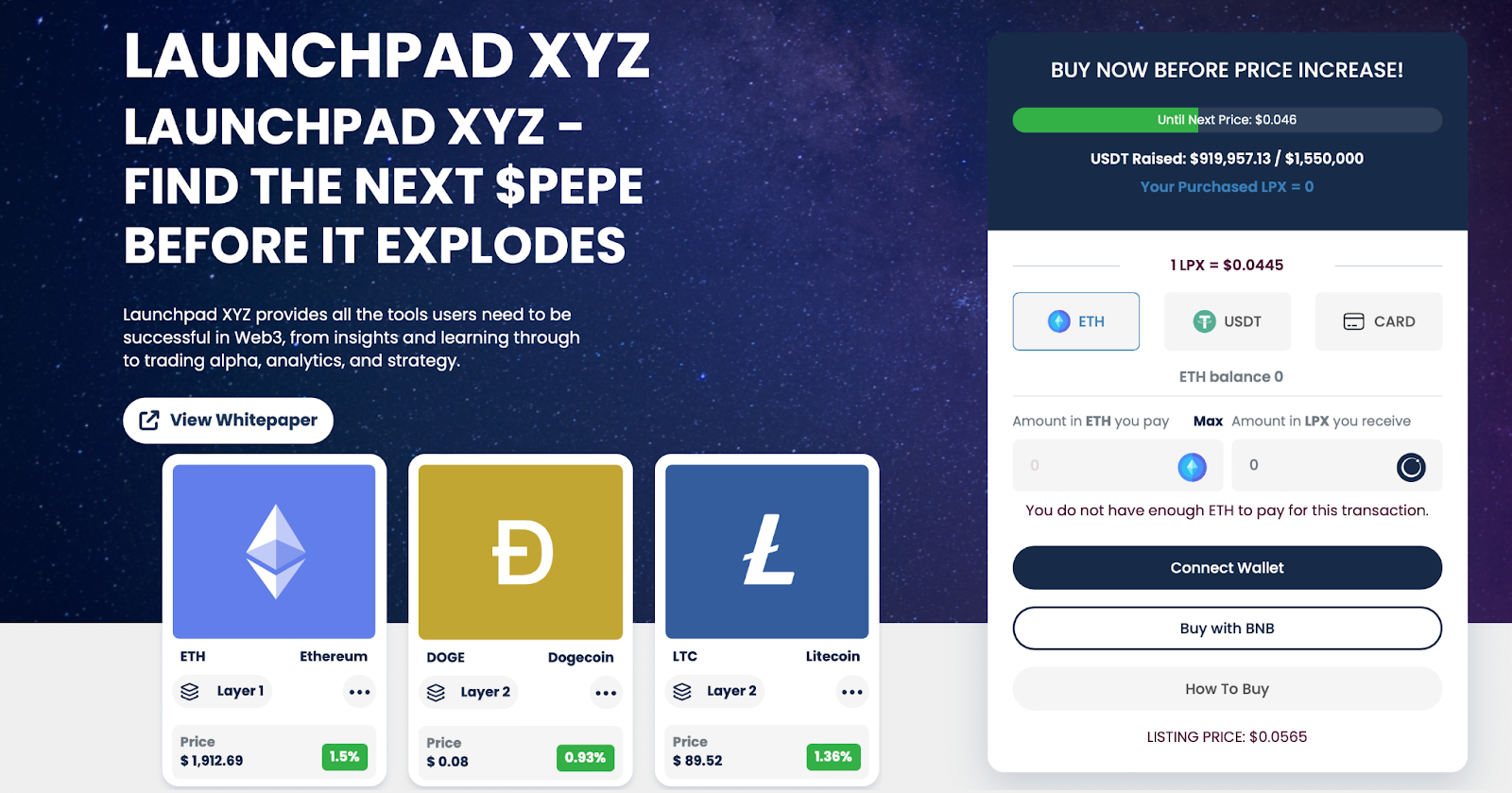 Damit hat $LPX – der native Token von Launchpad XYZ – das Potenzial, in den nächsten Wochen und Monaten deutlich anzusteigen. Der $LPX-Token ist aktuell noch im Presale erhältlich und Anleger haben bereits knapp eine Million Dollar in den Coin investiert. Im Laufe des Presales gibt es für Investoren noch die Möglichkeit, einen Buchgewinn bis zum Listing an den Kryptobörsen mitzunehmen, da der Preis in verschiedenen Phasen des Presales immer weiter ansteigt.