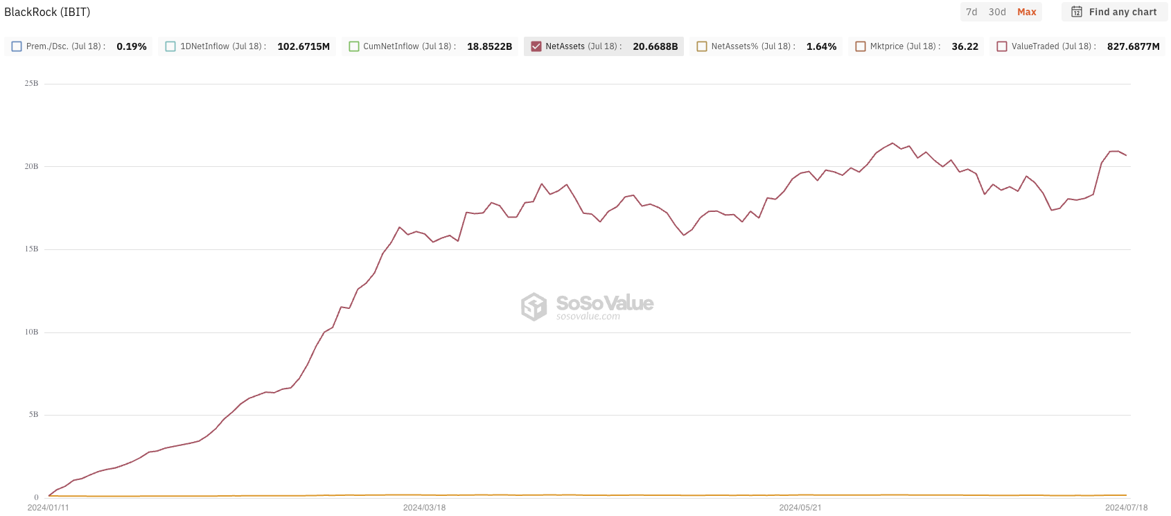 Zudem ist BlackRocks iShares Bitcoin Trust der größte Spot-Bitcoin-Exchange-Traded Fund (ETF) mit über 20 Milliarden USD unter Verwaltung.