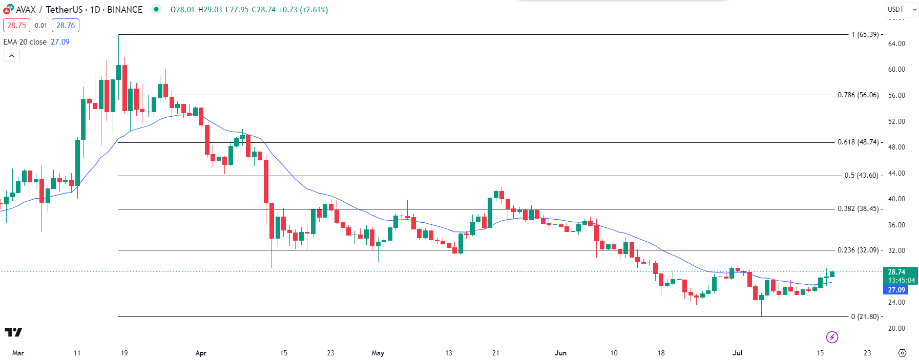 Avalanche (AVAX) hat in der letzten Woche einen Aufwärtstrend beibehalten, während sich der breitere Markt erholt hat. Derzeit wird der Altcoin zu 28,78 USD gehandelt und sein Kurs ist in den letzten sieben Tagen um acht Prozent gestiegen.