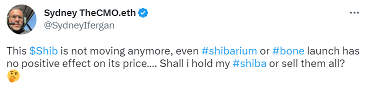 Auch der bekannte Krypto-Influencer Sydnet Ifergan stellte fest, dass eine positive Kursreaktion auf die Shibarium-News ausblieb. Daher überlegt er, seine SHIB-Position zu liquidieren.