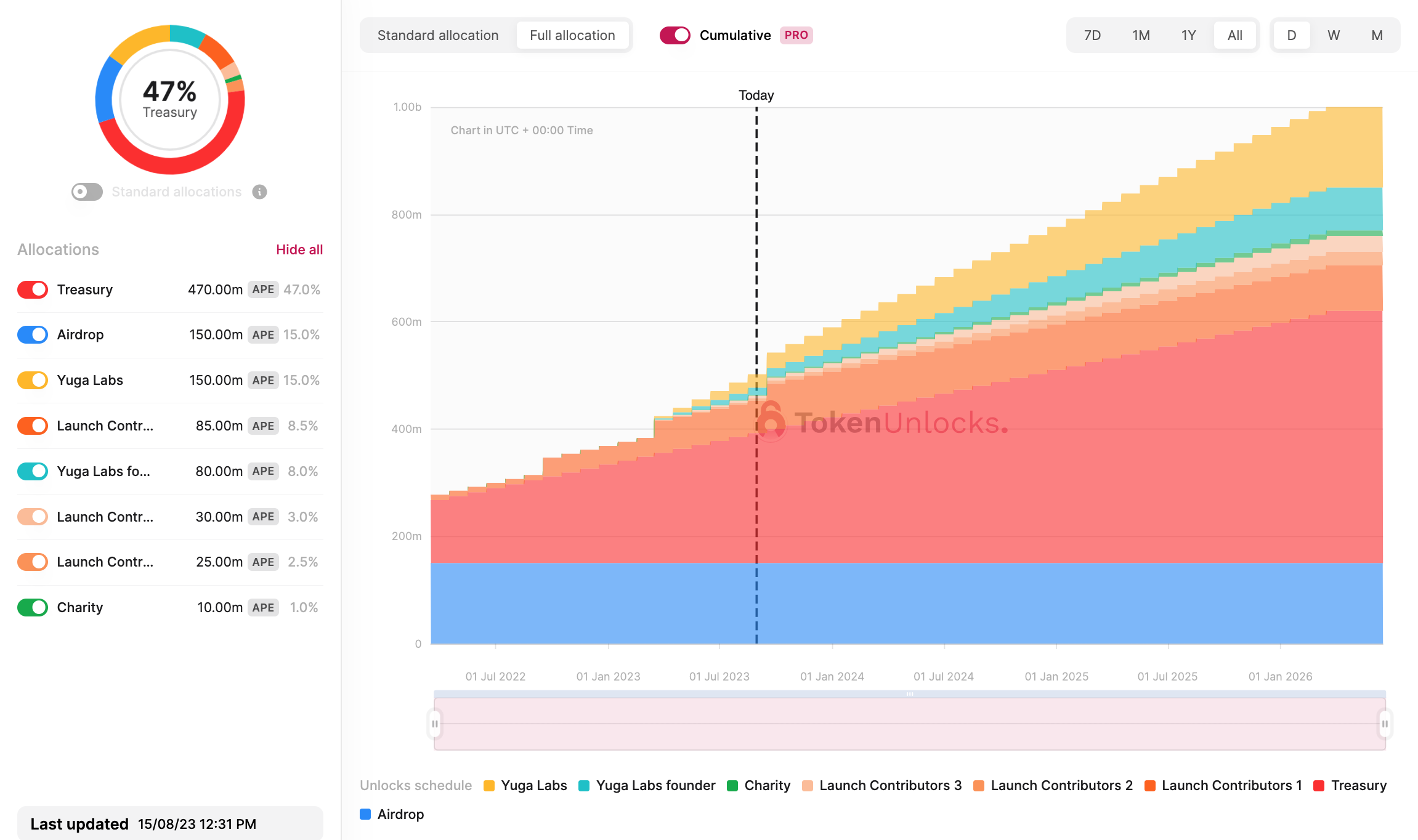 Zudem werden seit der letzten Erhöhung auch Token an Yuga Labs, Yuga Labs Founder und alle anderen Mitwirkenden ausgegeben, und zwar monatlich. Diese Ausschüttungen kannst du im Detail auf Token Unlocks nachsehen.
