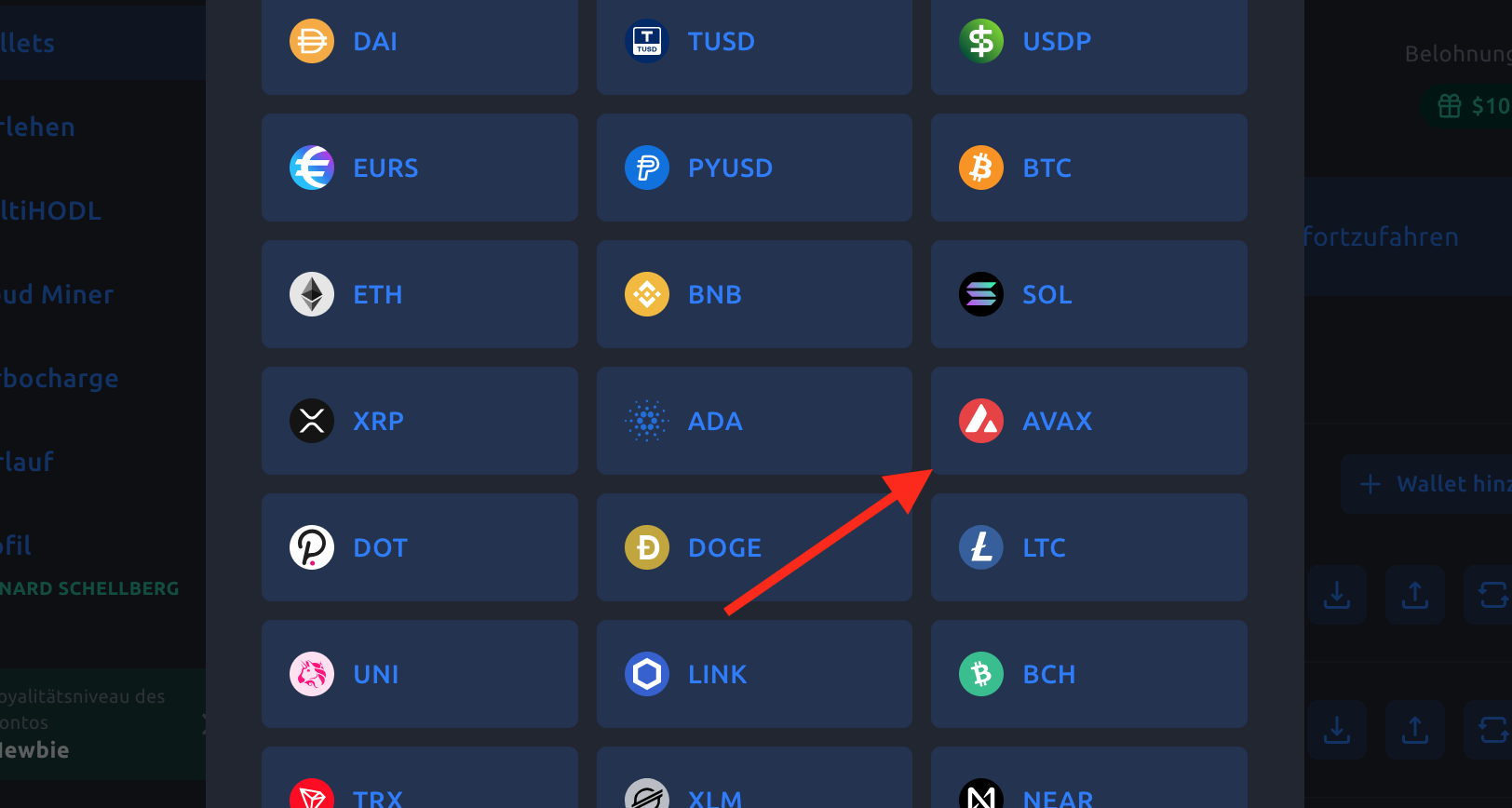Schritt 2: Wähle anschließend “AVAX” aus.