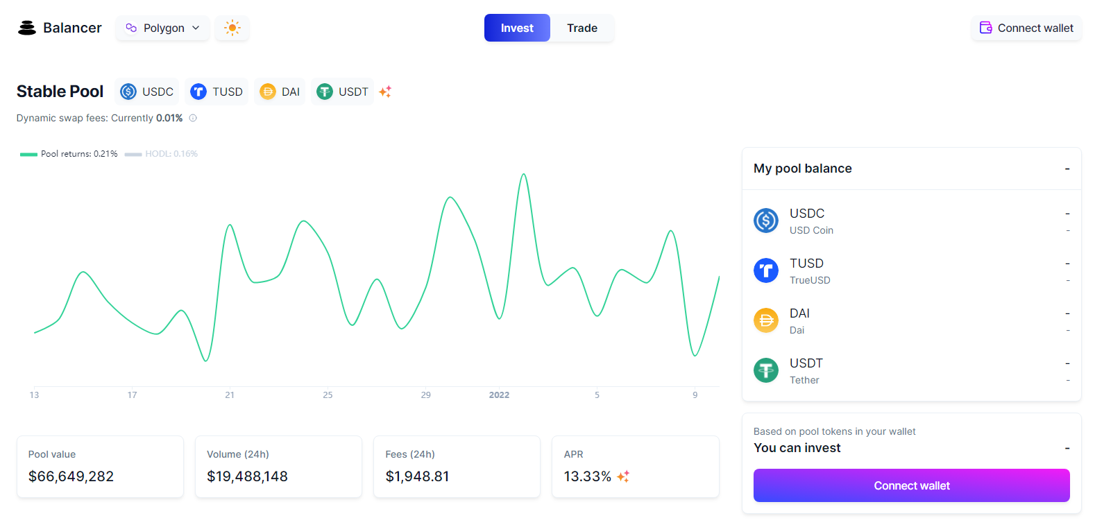 Balancer ist ein sehr bekannter Automated Market Maker (AMM), der in der Krypto Community bereits recht beliebt ist. Er ist nicht nur ein AMM, sondern verfügt auch über einen Portfoliomanager, der automatisch ein Rebalancing vornimmt – und Sie kassieren Gebühren von Tradern, die dies tun, indem sie Arbitragemöglichkeiten folgen.