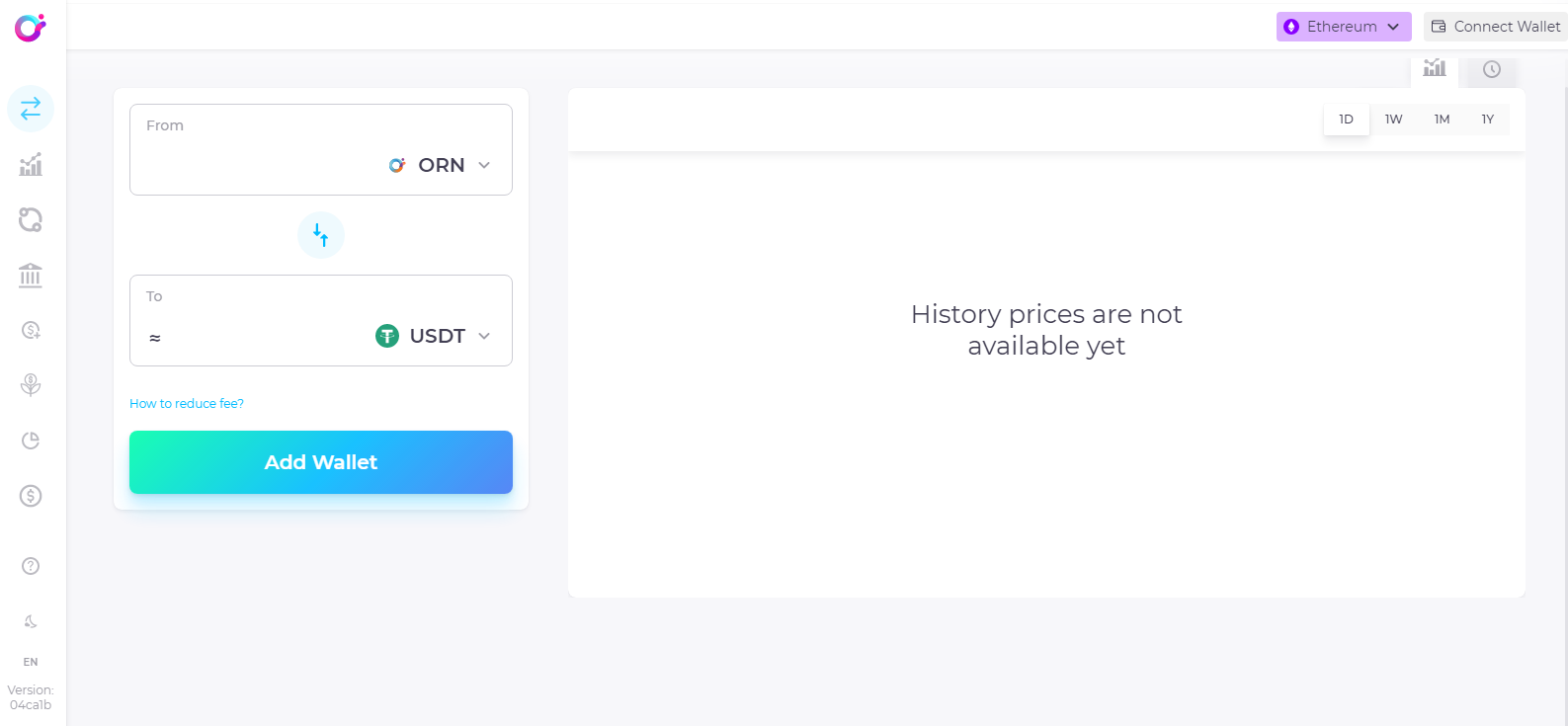Sowohl zentralisierte als auch dezentralisierte Börsen können über Orion genutzt werden, und die Nutzer erhalten die besten Kurse und null Slippage mit ihr. Die Plattform bietet auch Handels-Tools für die Marktanalyse, und die Arbitrage-Möglichkeiten können ausgeführt werden, ohne dass mehrere Konten erforderlich sind.