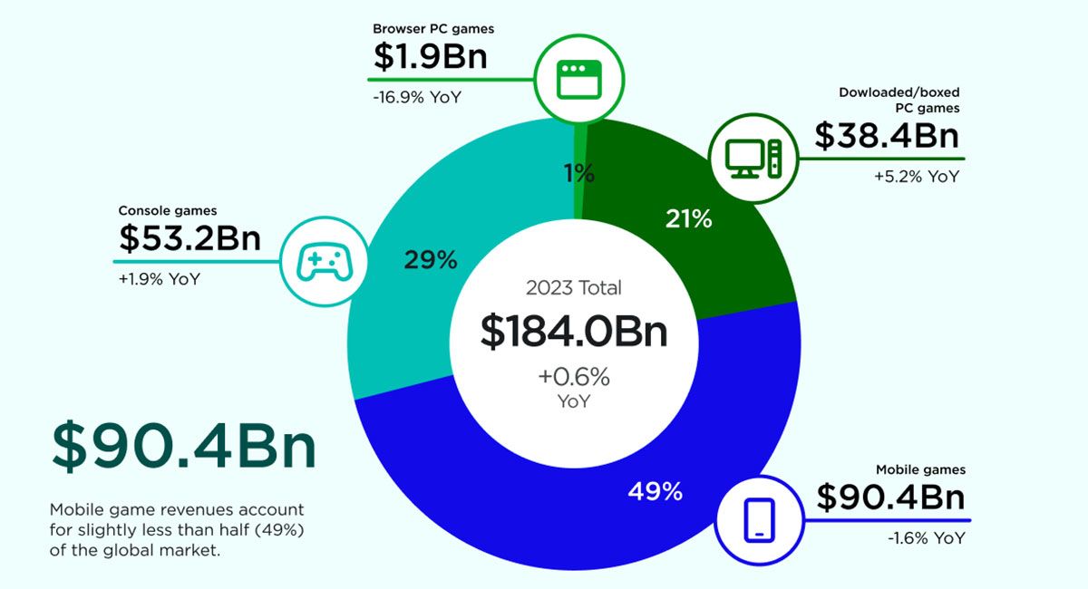 Da Handyspiele einen beträchtlichen Teil der Einnahmen des Spielemarktes generieren, haben sich Krypto-Mining-Spiele zu einer beliebten Unterkategorie entwickelt. Im Jahr 2023 machten sie etwa 49 Prozent oder 90,4 Milliarden Dollar an Einnahmen aus.