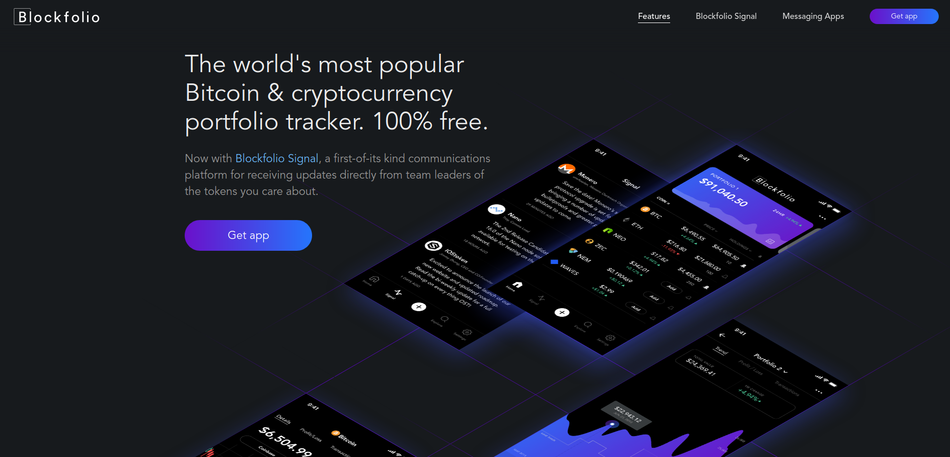 Blockfolio ist einer der beliebtesten Portfolio-Tracker auf dem Markt, und das aus gutem Grund. Neben der intuitiven Benutzeroberfläche bietet Blockfolio über 8000 Kryptowährungen an. Mit der Messaging-Funktion können Entwickler-Teams direkt mit ihrer Community in Verbindung treten. Messaging ist im Allgemeinen ein großer Teil des Repertoires von Blockfolio. Des Weiteren ermöglicht es auch die Integration mit mehreren Messaging-Anwendungen.