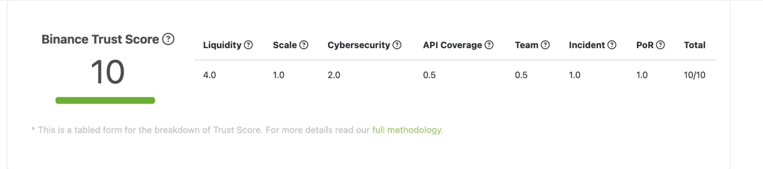 Mit einer maximalen Punktzahl von zehn gehört Binance laut dem CoinGecko Dashbord zu den vertrauenswürdigsten Börsen.