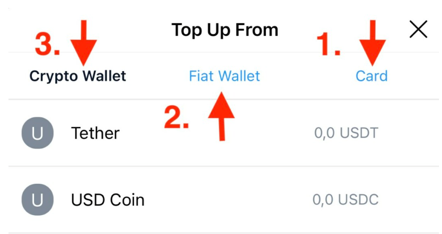 Sponsored SponsoredKlicke zuerst in der Crypto.com App unten rechts auf den “Card“-Reiter und wähle “Top Up” aus.