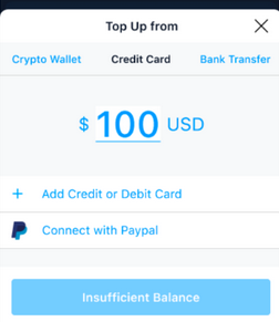 Um Fiat Geld via PayPal einzuzahlen, wähle einfach das Feld “Connect with PayPal” unter der Zahlungsmethode “Credit Card” aus.