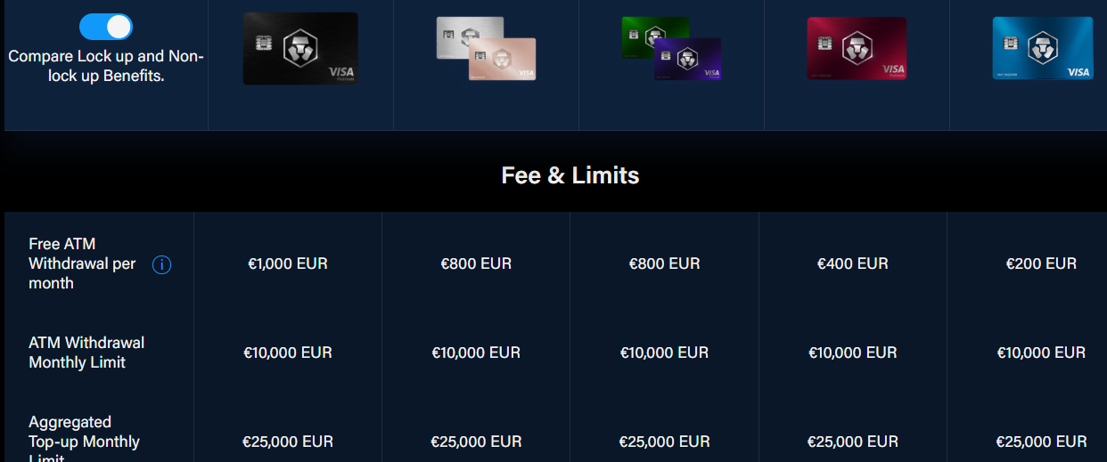 - Gebühren und Limits der Crypto.com Kreditkarte