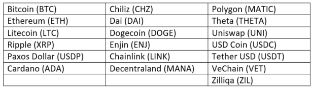 Wenn du deine Crypto.com Visa Card mit Krypto nutzen möchtest, kannst du sie mit den folgenden Kryptowährungen aufladen: