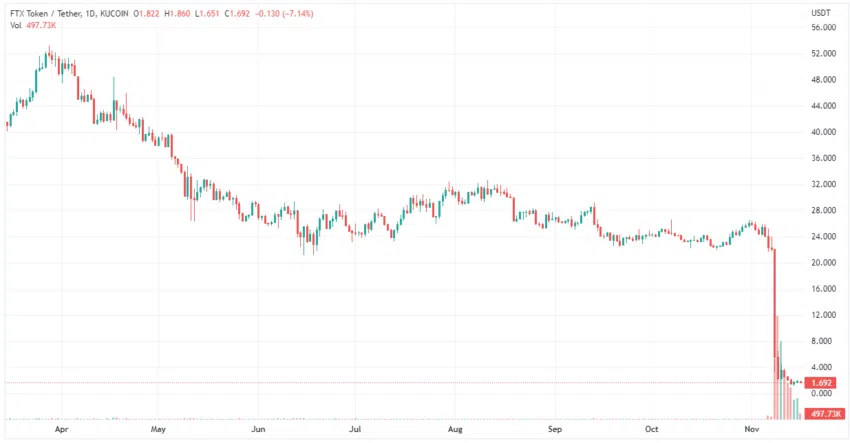 Die ersten Risse zeigten sich im Mai 2022, als FTX seine Plattform durch die Einführung von Aktienhandelsfunktionen erweiterte. Diese Initiative wurde von FTX U.S. geleitet – der US-Abteilung der Plattform. FTX hatte sogar seinen hauseigenen Token, den FTT-Token, der sich vor November 2022 sehr gut entwickelte.