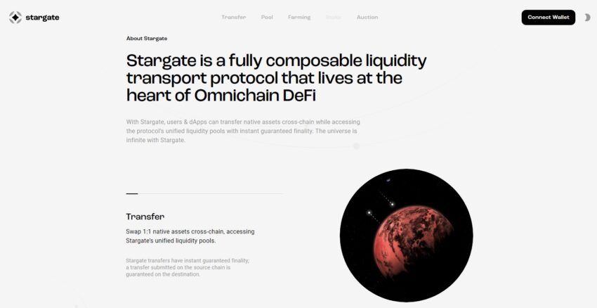 Stargate ist ein Liquidity-Transit-Protokoll, das es Nutzern ermöglicht native Assets Chain-übergreifend zu tauschen. Am attraktivsten ist allerdings die Möglichkeit Stablecoins zu staken und dafür Belohnungen in der nativen Währung der Plattform, STG, zu erhalten.