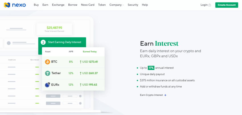 Nexo ist die erste Plattform die mit Kryptowährungen gesicherte Sofortkredite anbietet und darauf abzielt, Ineffizienzen auf dem Kreditmarkt zu lösen. Du kannst diese Plattform quasi als Krypto-Sparkonto ansehen.