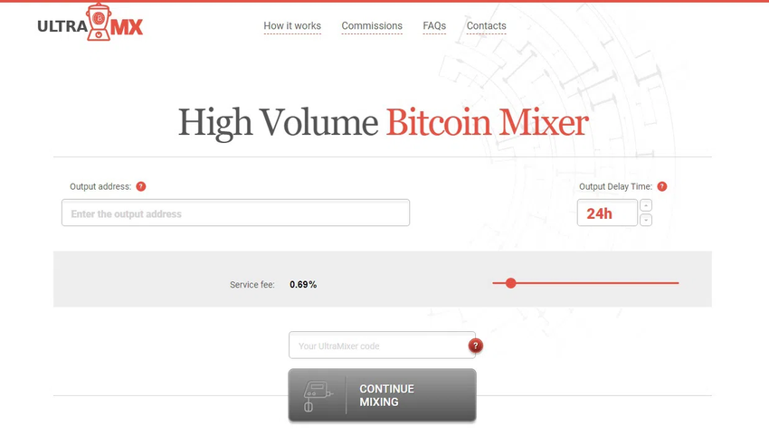 UltraMixer.net ist ein Bitcoin-Mixer, der ein hohes Maß an Vertraulichkeit bieten, indem er einen Mix aus Bitcoin-Adressen für Transaktionen verwenden. Das System gewährleistet eine schnelle und zuverlässige Transaktion und berechnet seine bescheidene Provision erst, nachdem die Zahlung bestätigt wurde. Alle Daten werden gelöscht, und es gibt kein Datenprotokoll.