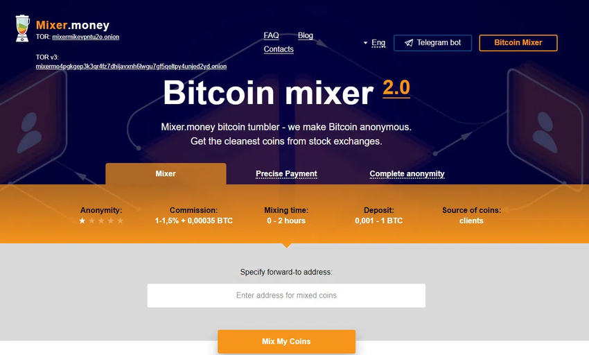 Mixer.money ist ein Bitcoin-Mixer, der die von jedem Nutzer erhaltenen Gelder in kleinere Teile aufteilt und sie mit Kapital anderer Kunden mischt. Du erhältst nicht zurückverfolgbare Coins in der Form von kleineren Zahlungen an deine neue Bitcoin-Adresse geschickt. Mixer.money verwendet zwei Mischalgorithmen und löscht alle Daten zu einer Transaktion nach 48 Stunden.