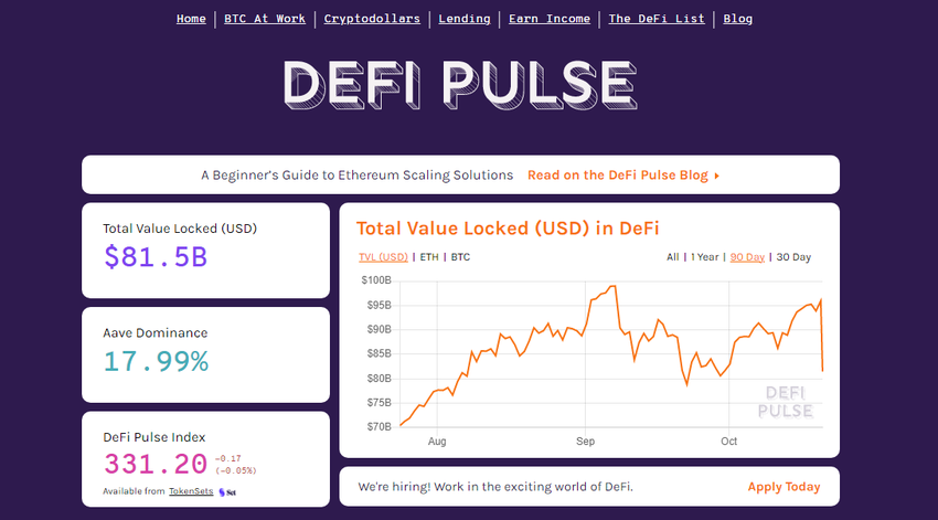 Das Tool DeFi Pulse ist eine Übersicht über alle DeFi-Anwendungen. Diese führende Ressource kann dir helfen, alle deine DeFi-Assets und Projekte zu verfolgen.