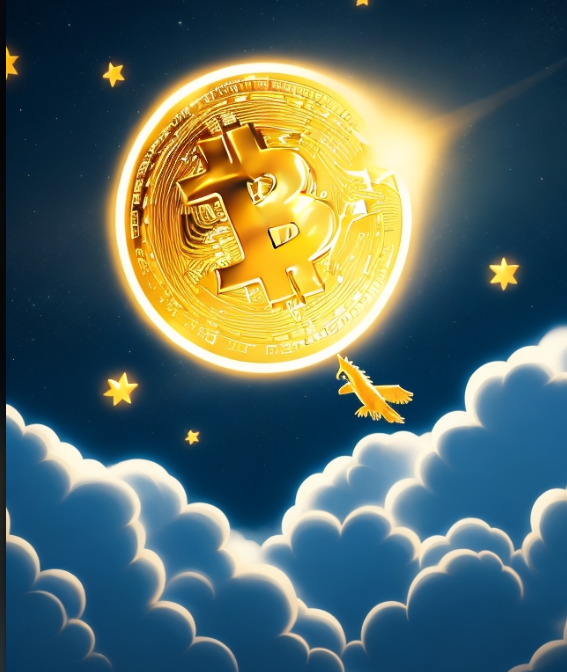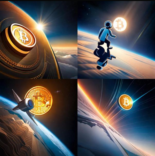 Sponsored Sponsored“A cartoon style image of a bitcoin coin flying towards the moon in space”