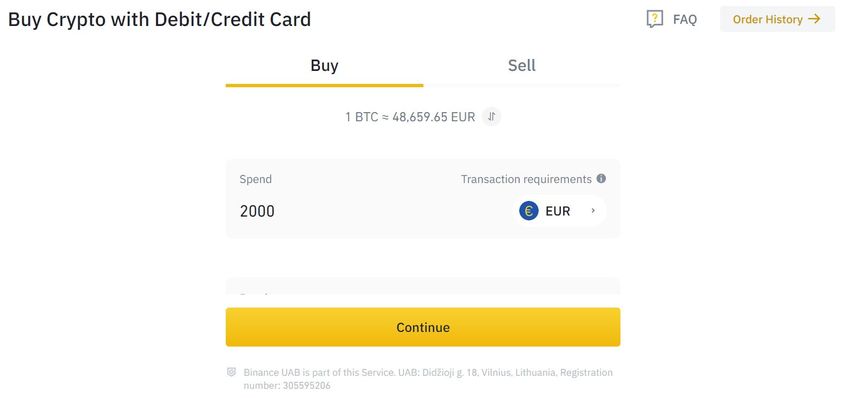 Um Kryptowährung auf Binance zu kaufen, gehst du oben links auf ‘Krypto kaufen > Kredit- / Debitkarte‘. Zum Zeitpunkt dieses Artikels kann Illuvium (ILV) nicht direkt gekauft werden, sondern muss über eine der verfügbaren Kryptowährungen bezogen werden. Die folgenden Paare sind auf Binance verfügbar: