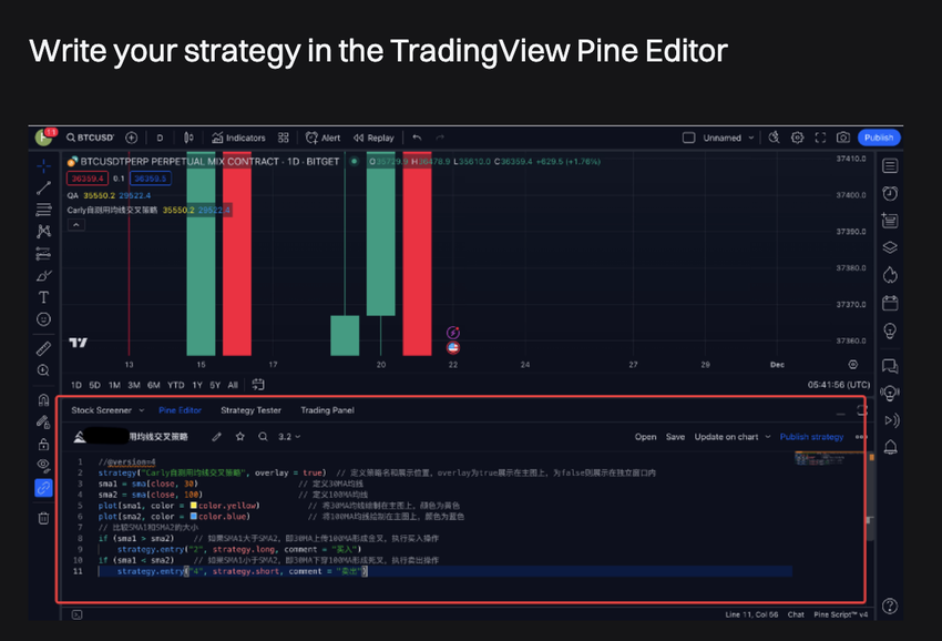 - Sobald du zufrieden bist, wende die Strategie auf dein ETH/USDT-Chart an.
