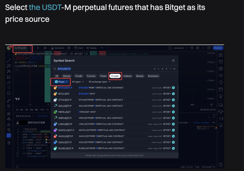 - Einige Benutzer sehen möglicherweise nur voreingestellte Bots, die basierend auf den Trading-Präferenzen verwendet werden können. Um die Einstellungen zu optimieren, kannst du jedoch zu Bitgets TradingView-Oberfläche gehen und die Parameter entsprechend anpassen.