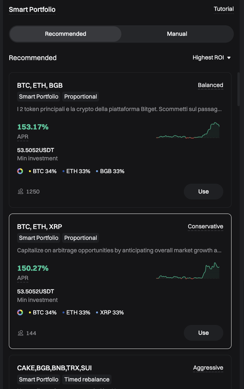 Der Portfolio-Bot ist ein zuverlässiges Tool für Swing-Trader und sogar HODLer. Außerdem gibt es mehrere voreingestellte Bots, die du einfach kopieren und basierend auf deiner Investitionsaggressivität verwenden kannst.