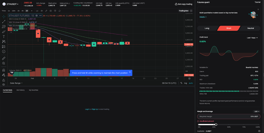 - Wähle ein Futures-Trading-Paar (z.B. ETH/USDT).