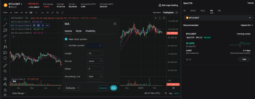 Hinweis: Der CTA (Commodity Trading Advisor) Bot ist sowohl für Spot- als auch für Futures-Trading verfügbar. Der Hauptunterschied besteht darin, dass der CTA Spot Bot Trades ohne Hebelwirkung ausführt und Markttrends auf dem Spot-Markt folgt. Der CTA Futures Bot funktioniert auf die gleiche Weise, ermöglicht jedoch Hebelwirkung, was sowohl potenzielle Gewinne als auch Risiken erhöht.