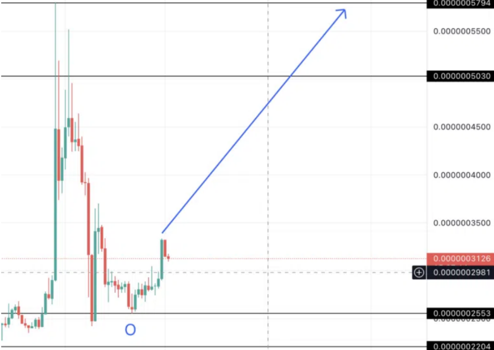 ELON Coin hat im Jahr 2022 bereits ein höheres Tief gebildet, wobei der Punkt O höher als der Punkt Z lag.