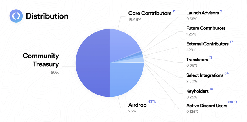 Die Entwickler verteilten die Token an Wallets mit einer ENS-Domain. Die Zuteilungen basierte auf der Dauer, die eine ENS-Domain bereits im Besitz des Nutzers war.