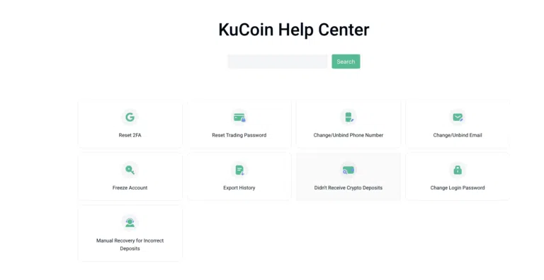 Bevor wir zu den persönlichen Erfahrungen kommen, werfen wir einen genaueren Blick auf das Kundensupportsystem von KuCoin. Dazu gehören: