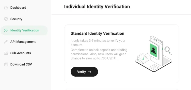Die Börse bietet eine benutzerfreundliche Plattform für den Handel mit digitalen Vermögenswerten. Wie bei den meisten Handelsplattformen steht die Sicherheit und Legitimität der Nutzer:innen stark im Vordergrund. Daher musst du einen unkomplizierten Anmelde- und KYC-Verifizierungsprozess durchlaufen, bevor du in die weite Welt des Krypto-Handels eintauchen kannst.