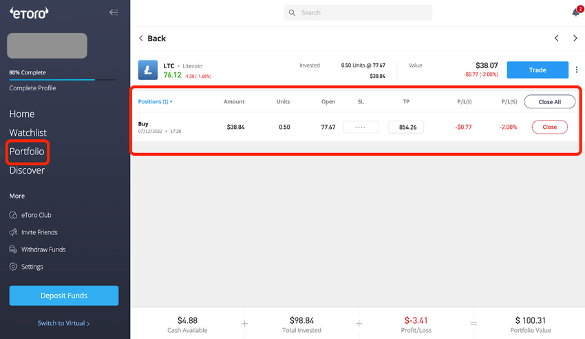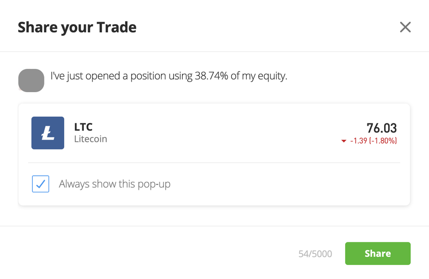- Wie viel von deinem eToro-Portfolio diese Litecoin-Investition ausmacht