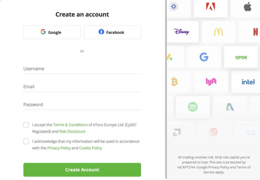 1. Erstellen deins eToro Kontos