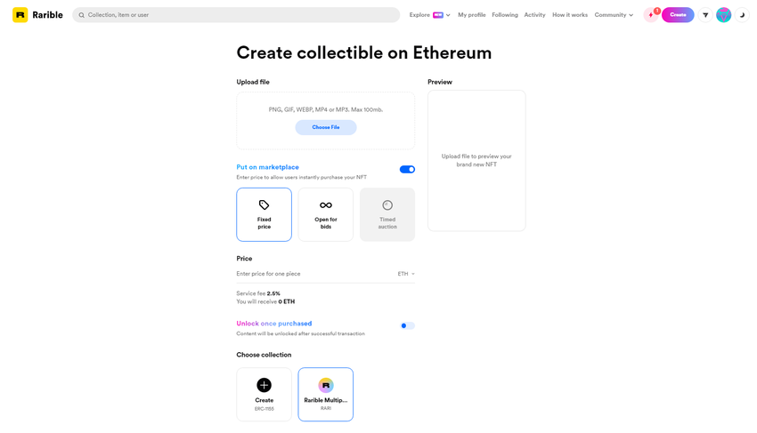 - Rarible ist einsteigerfreundlich und der gesamte Verkaufsprozess ist unkompliziert.