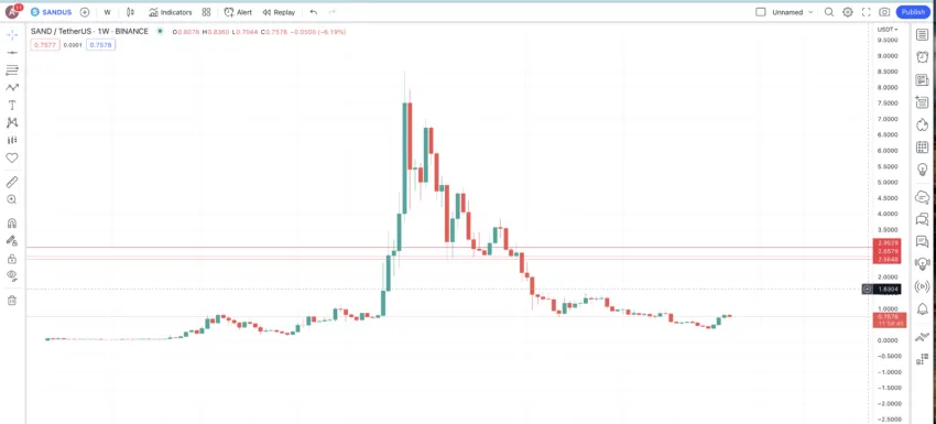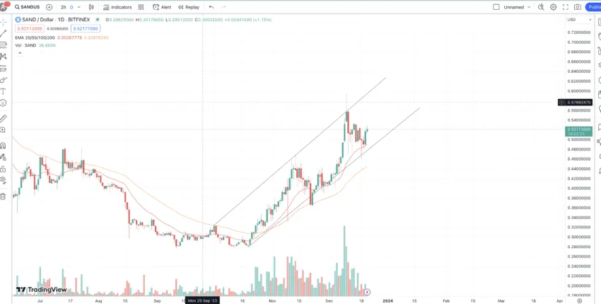 Wir hatten ein Hoch von 1,18 USD für 2023 prognostiziert, und SAND reagierte, indem es bis zu 0,912 USD stieg. Wir sollten dies als Erfolg werten, da der Gaming- und Metaverse-Token-Bereich nicht das beste Jahr 2023 hatte. So haben wir die SAND-Preisprognose für 2023 angegangen.