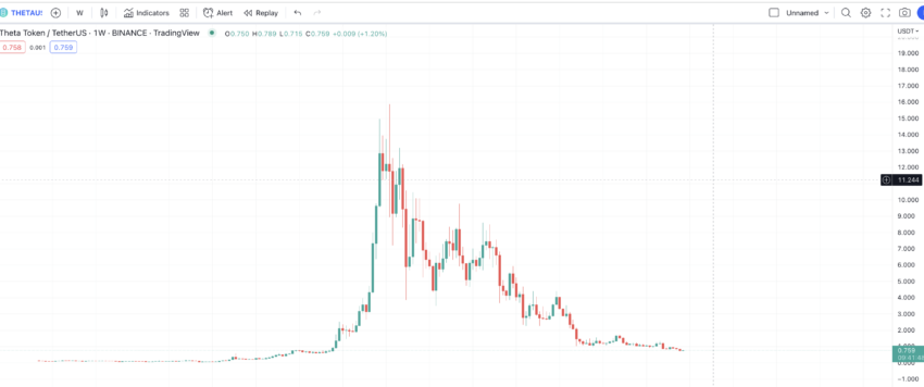 Mit dem Wochenchart können wir Muster identifizieren, um die kurz- und langfristigen Kursbewegungen von THETA zu verfolgen.